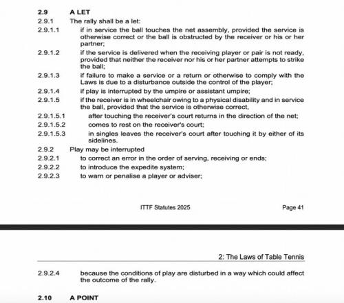 为此,我查了国际乒乓球协会的最新的规则手册,找到了有关“重新发球”的部分。