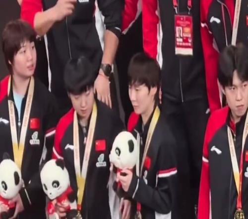 颁奖典礼上,王楚钦和蒯曼站在了C位,两人一起托起了冠军奖杯。孙颖莎竟然站在了最边上。孙颖莎显然没有在乎合影的C位。